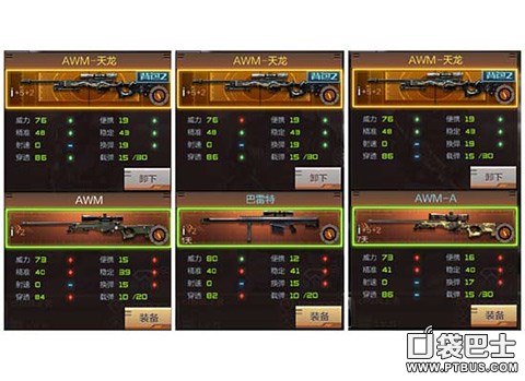 很多人都认为同样是awm的皮肤版,有何好比。那你就大错特错,通过对比,我们看到并不是这样。每一个awm都有它的亮点,就如这AWM—天龙其威力、精度、便携、稳定和换弹就要比AWM-A来得高,所以各有各的亮点,但AWM—天龙都略胜一筹。这种种的数据对比,我们可以看出AWM—天龙真的是一把不错的狙击枪,能让玩家体验到狙击所带来的快感。