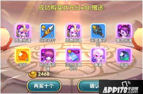 点将里的宝贝种类非常多,有装备、将魂、卷轴等等, 而且首次抽取及十连抽时,是必得好东西的哦!