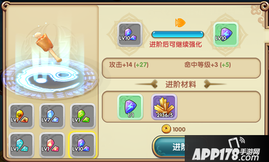 神兵进阶:需要消耗金币和对应部件的魂石和进阶材料,神兵进阶可开启更高的强化等级,神兵可进阶等级受玩家等级限制。