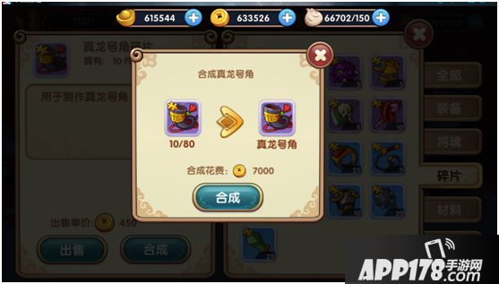 还有装备碎片,装备碎片可以在仓库界面直接进行合成操作,当然合成条件需要足够的装备碎片和合成金币数量。