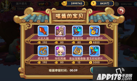 还有一个商店是神秘商店,神秘商店在挑战副本的时候有几率触发,触发后会给予玩家提示,当玩家返回游戏主界面的时候会出现一只比较显眼的兔子闪亮亮登场!进入后就可以看到喵酱的私藏宝贝啦!