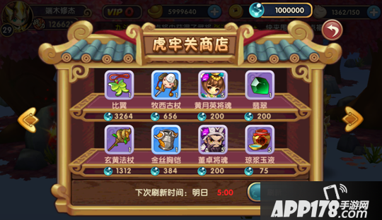 虎牢关商店中的道具均需要使用战魂石进行兑换,虎牢关商店的道具刷新时间是每日5:00!