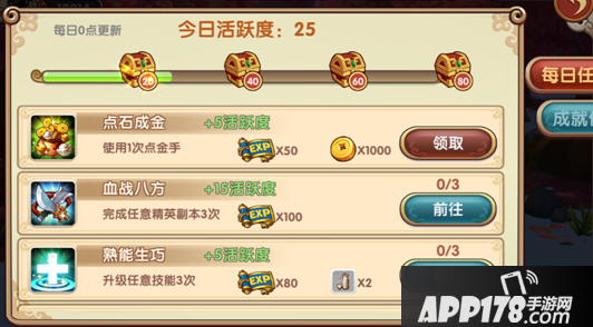 完成日常任务可以获得活跃度奖励,达到一定活跃度即可领取活跃宝箱。