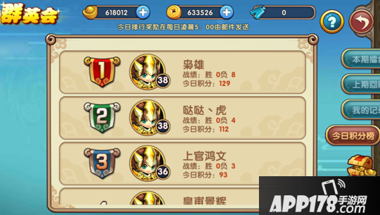 查询群英会积分榜单可点击今日积分榜查询今日排名状态。今日排行榜奖励均在每日凌晨5:00由邮件发放。