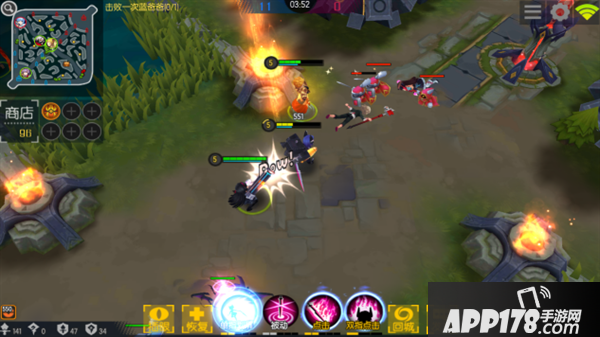 游戏画面也是本游戏值得一提的地方,战争迷雾的显示很好的还原了moba游戏的视野显示功能,二次元英雄们绚丽的技能释放也为游戏的战斗场景增添了不少的美感。