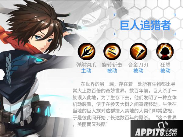 背景:在世界的另一端,存在着一处所有生物都比寻常大上数百倍的奇妙世界。数百年前,巨人杀手一族误入此地,为了生存下去,他们发明了一种立体机动装置,便于在参天大树之间高速移动。生活在当地的巨人族对这群擅入禁地的人类们非常敌视,于是彼此间开始了长达数百年的厮杀。“这个世界,美丽而又残酷”