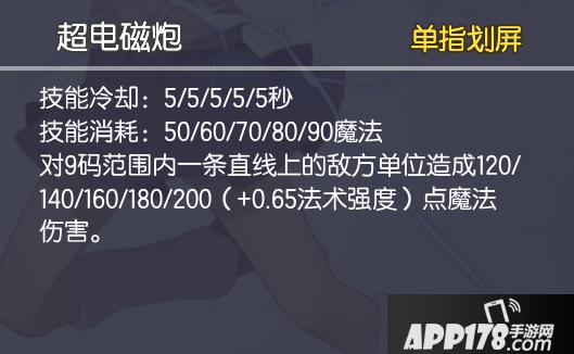 超电磁炮根据大招,需要冲入人群中造成伤害和控制,所以需要半肉AP装备。冰杖、大面具、沙漏的经典配合就能很好的适应超电磁炮的需求。此外恶魔之刃能给配合超电磁炮的被动,提供持续的平A输出。最后一件法穿杖提高魔法穿透。