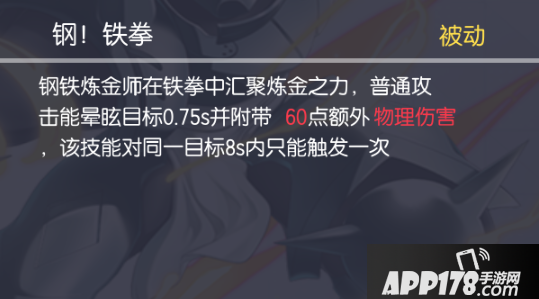 钢铁炼金师(以下简称炼金)是一个拥有短CD位移和诸多控制技能的团控型英雄。他的被动可以让他获得额外的生命值,所以在中后期他可以保持又肉又蓝和给予大量控制的能力,而前期5级大招的留人效果也是短腿脆皮的噩梦。这样一个在任何时期都能发挥作用的全面坦克在高端局很受欢迎。