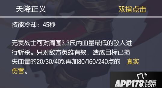 无畏的技能说明他可以利用自己1技能无CD和无消耗的超强特性,在1级团选择跟队友抱团来获取最大的前期战斗优势,甚至直捣野区。无畏的大招是根据敌方英雄的损失血量来计算的真实伤害,意味着无畏可以不考虑出输出也能在中后期打出自己高额的斩杀伤害。