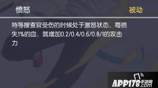 搜查的技能说明他是一个1级团最好的先手英雄:1技能位移+嘲讽控制可以让敌人留在原地配合队友接上后续控制进行击杀;2技能在单挑对拼上可以提供大量的输出;3技能则是血量越低攻击力越高,保证了自己中后期的输出能力;4技能大招又额外增加攻击力,还有移速和攻速加成,同时刷新1技能。搜查的大招算是次元大招排行中前列的技能,强化各种属性同时刷新技能,5级的搜查就有了1打2的作战能力,真的非常恐怖。