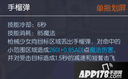 枪械的手雷在前期的伤害非常高,是对线消耗的输出核心技能,也可以在敌放打野GANK的时候保护自己,然后利用被动加速快速撤离;在CD足够的情况下,枪械可以通过大招捡起所有武器来回复大量的蓝,很快下一发的大招就又好了。