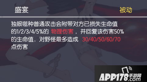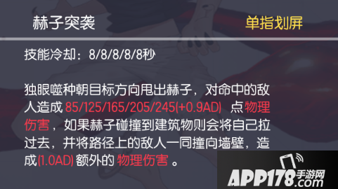独眼噬种的技能说明他是一个控制和位移技能充足的英雄,1技能(主动)可以把自己拉到墙上,沿途如有目标,则目标撞墙击晕,拉不到墙则减速目标;2技能(被动)普攻造成目标已损失的百分比伤害,这个伤害50%作为回复,说明独眼噬种回复能力强,对残血目标的斩杀非常强;3技能是次元最强的位移技能,位移分为两段,可以自由选择每次跳跃的方向,同时跳起后在空中不动,则1.5S无敌,提前使用则范围变小并减速目标,总体是非常实用的;4技能大招可以获取大范围的生命值低于50%的敌方英雄视野,意味着独眼噬种靠近敌方残血的时候,地图上就会有这个目标的头像显示,非常方便独眼噬种对这个残血敌人的追击。