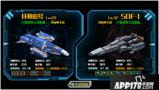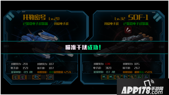 电子战装备有多重类型可供玩家选择,包括:降低敌方母舰火力、增加敌方技能冷却、增加敌方技能消耗、降低对方能量回复、降低敌方技能触发几率、降低敌方治疗效果等效果。我方也可装载对应的装备来应对敌方的干扰设备。