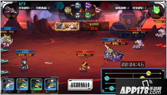战斗时玩家可选择4条不同的进攻路线,击败一条路线上的所有敌人后,可抢夺敌方晶矿。如果被敌方进攻到我方占地,则会降低我方母舰生命值。战斗时间耗尽或我方母舰生命值耗尽时,战斗结束。