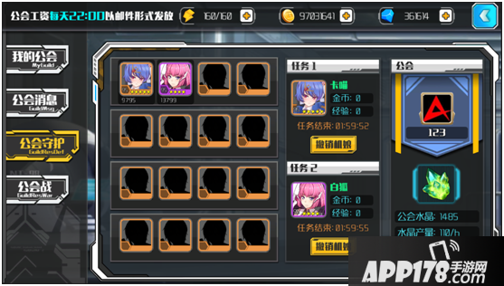 领地守护:玩家可派遣机娘守护我方公会的晶矿,根据守护时间获得金币和经验奖励。