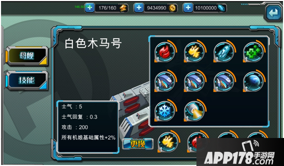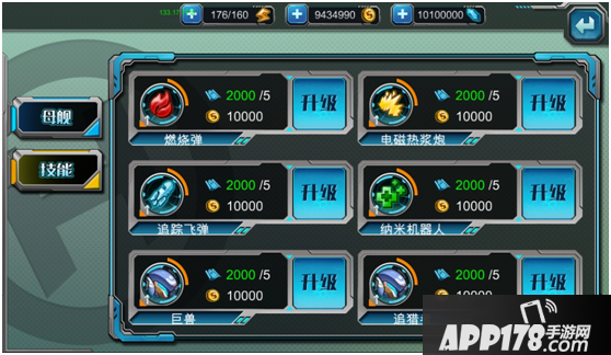 5、母舰技能可进行升级,技能升级需要消耗金币和改造图纸