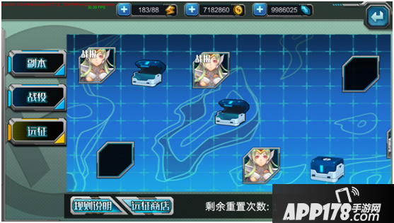 远征每天都有固定的次数,使用完后可通过重置获得额外次数。
