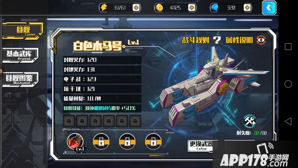 5、母舰技能可进行升级,技能升级需要消耗金币和改造图纸