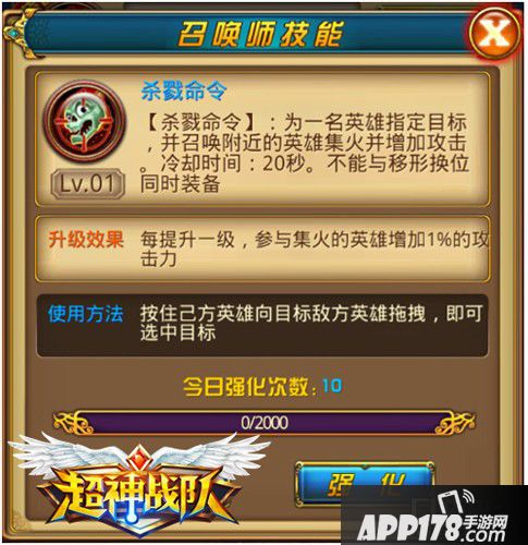 APP178手游网>超神战队>游戏攻略>提升战力超神战队召唤师技能养成法则