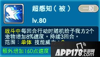 超感知:战斗中每回合行动时随机给予我方2个宠物增加8%速度。持续3回合。