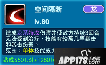 空间断裂:可以照成龙系特攻伤害并使地方持续3回合无法受到治疗,技能有较高几率暴击和暴击伤害