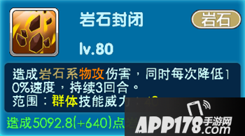 当亲密度达到十级的时候-岩石封闭:造成岩石系物攻伤害,同时每次降低10%速度,持续3回合。属于群体技能,技能威力40