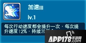 加速:每次行动速度都会提升一次,每次提升度,持续三回合。