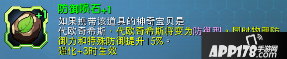 攻击陨石:如果携带该道具的神奇宝贝是代欧奇希斯,代欧奇希斯将变为防御型。同时物理防御力和特殊防御力提升。