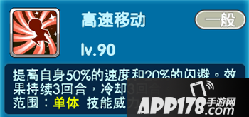 当亲密度达到十级的时候-高速移动:提高自身50%的速度和20%的闪避。效果持续3回合,冷却3回合。属于单体技能,技能威力0。