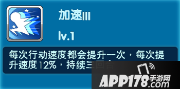 加速:每次行动速度都会提升一次,每次提升度,持续三回合。