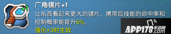 广角镜片:让东西看起来更大的镜片。携带后技能的命中率和控制概率能提升。