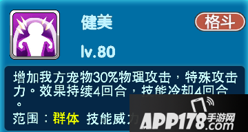 【健美】能够使队友增加30%物理攻击和特殊攻击力。