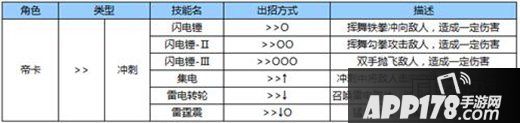 最热血的动作格斗,最酷炫的光影特效!2015年度大作,日系殿堂级动作手游《苍翼之刃》带你重温经典格斗体验,带来一场场酣畅淋漓的动作格斗盛宴!今天,小编为大家带来了游戏第一硬汉“赤鬼”帝卡的出招表,让打斗畅爽随心,让你欲罢不能!