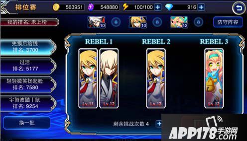 在《苍翼之刃》的主界面中,点击进入活动模式,选择排位竞技,便可进入排位赛界面。通常条件下,玩家每天拥有5次挑战机会,每次挑战最多可派出3名已解锁的英雄参战,可自由编排出战顺序。排位越高,奖励越丰厚,更有赢取海量钻石!