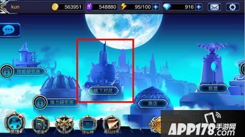 ②在主界面左侧点击“线下对战”建筑物;