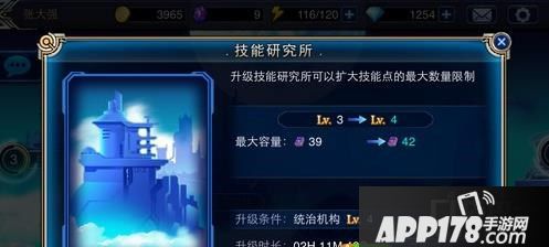 技能点是有最大数量限制的,想要提高技能点的最大数量,那么就需要去升级技能研究所。当然技能研究所的等级也受到统治机构的限制;