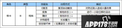 帝卡是苍翼之刃中的硬汉,特点就是狂暴强力,缺点也明显就是速度慢了!关于帝卡的技能大家了解多少呢?一起来看看小编为大家整理的帝卡出招表,相信有助于大家快速掌握帝卡的操作!