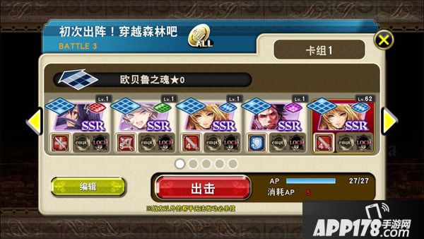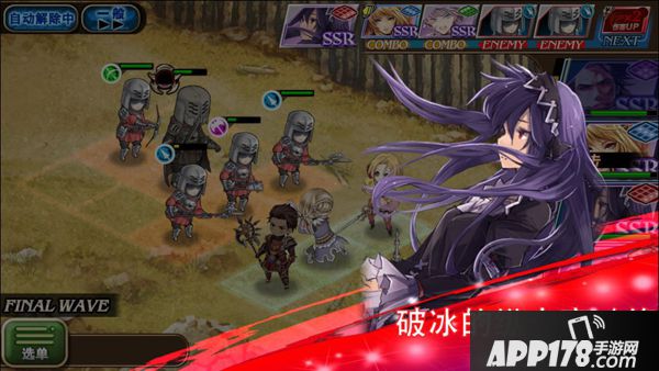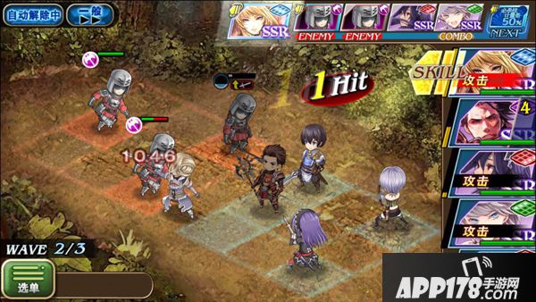 战斗运用3x3方格主战场,玩家最大出战5人,其中自己队伍4人,在线招募协助玩家一人,采用ATB攻击模式展开战斗,画面右侧的人物头像就是ATB槽,画面上方的空格则是行动格,稀有度越高、级别越高的角色ATB越快,右侧头像亮起就可以点击角色占领行动格攻击,连续点击角色将行动格占满的话就能形成小队Combo,给予敌人更大的伤害。