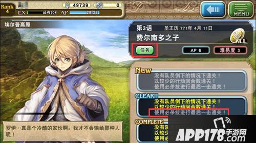 任务关卡界面会有详细的解释,如果有没有发亮的皇冠,点击中间的绿色皇冠就会有提示,你没有获得奖励的原因。游戏中主线任务的需求一般这三样:全员生还、短时间回合胜利、使用技能达成最后一击。