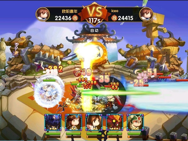 《锤子三国》在战斗操作上的优势,简单操作结合流畅的绚丽效果体验。