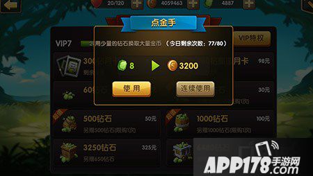 每天有10次机会(随着VIP等级点击的次数也会增加),只要几个钻石就可以换来大量的金币,非常划算。