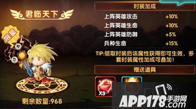APP178手游网>锤子三国>游戏攻略>君临天下时装厉害吗 君临天下时装介绍