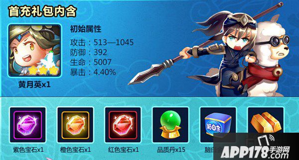 除了以上充值之外,游戏还为大家开启了首充,玩友们进行首充,可获得武将和礼包等,如图:
