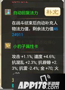比如小豹子的速度是增益4% 但是我的金五行和火五行有相应的等级加成,所以我实用了小豹子之后的真实速度增益是4.6%