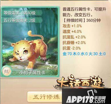 五行等级提升,即可使用相应等级的变身卡和属性卡了。