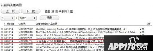 3、找到其中含有你需要退款产品的订单打开,通常一个订单会包含当天购买和下载的所有应用或游戏包括免费的在内。找到了需要的订单之后,点击下方的“报告问题”,之后会在订单列表的每一个条目后面多出一栏报告问题的链接,点击你需要退款的那个条目就会跳转到官方网站的问题反馈页面。