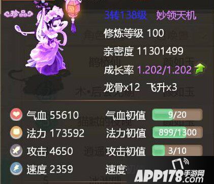 颜如玉作为老牌敏法神兽,长的美还秒的疼,在3转138级时,高亲密的支撑下,速度能达到2359,法力能达到17万。