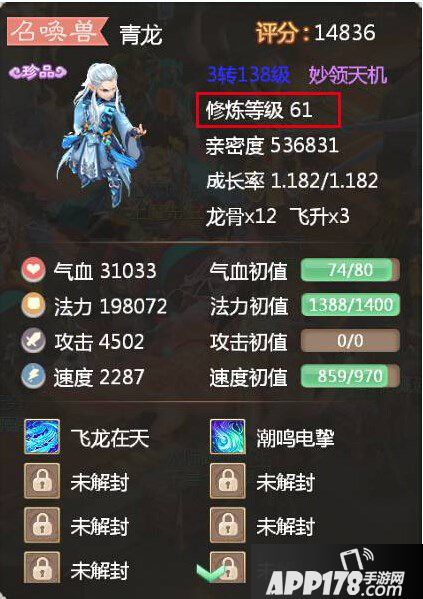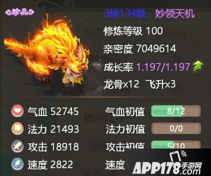 非常养眼的属性,可是颜如玉速度初值不及青龙,而法力初值也略逊,那么青龙的3转138级时,低亲密就达到了2287的速度,法力值更是达到了20万之高!如果搭配了高级万斛源泉,那可以达到23万!秒出来的伤害足够让人大吃一惊!