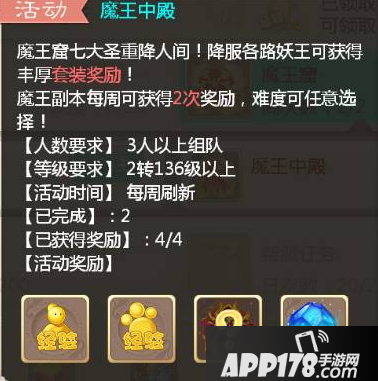 【奖励获得】经验,魔王窟中殿所产出的各种配饰,补天神石、玉符等