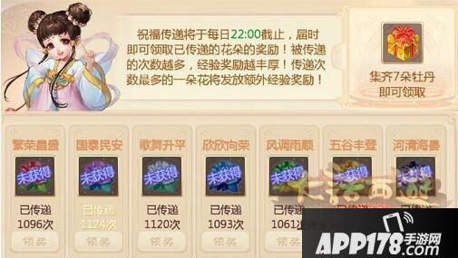 4、集齐7朵颜色牡丹花,即获得祝福大礼。具体大礼是什么,还需要等玩家体验。